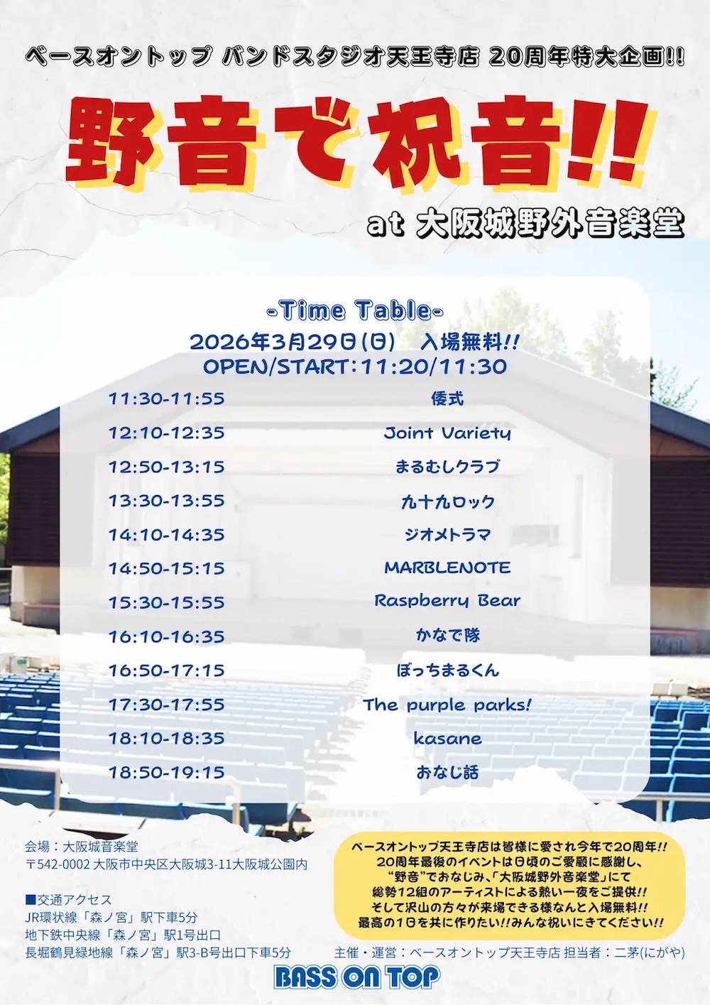 日頃のご愛顧に感謝し、大阪城野外音楽堂にて20周年記念イベント開催決定!
