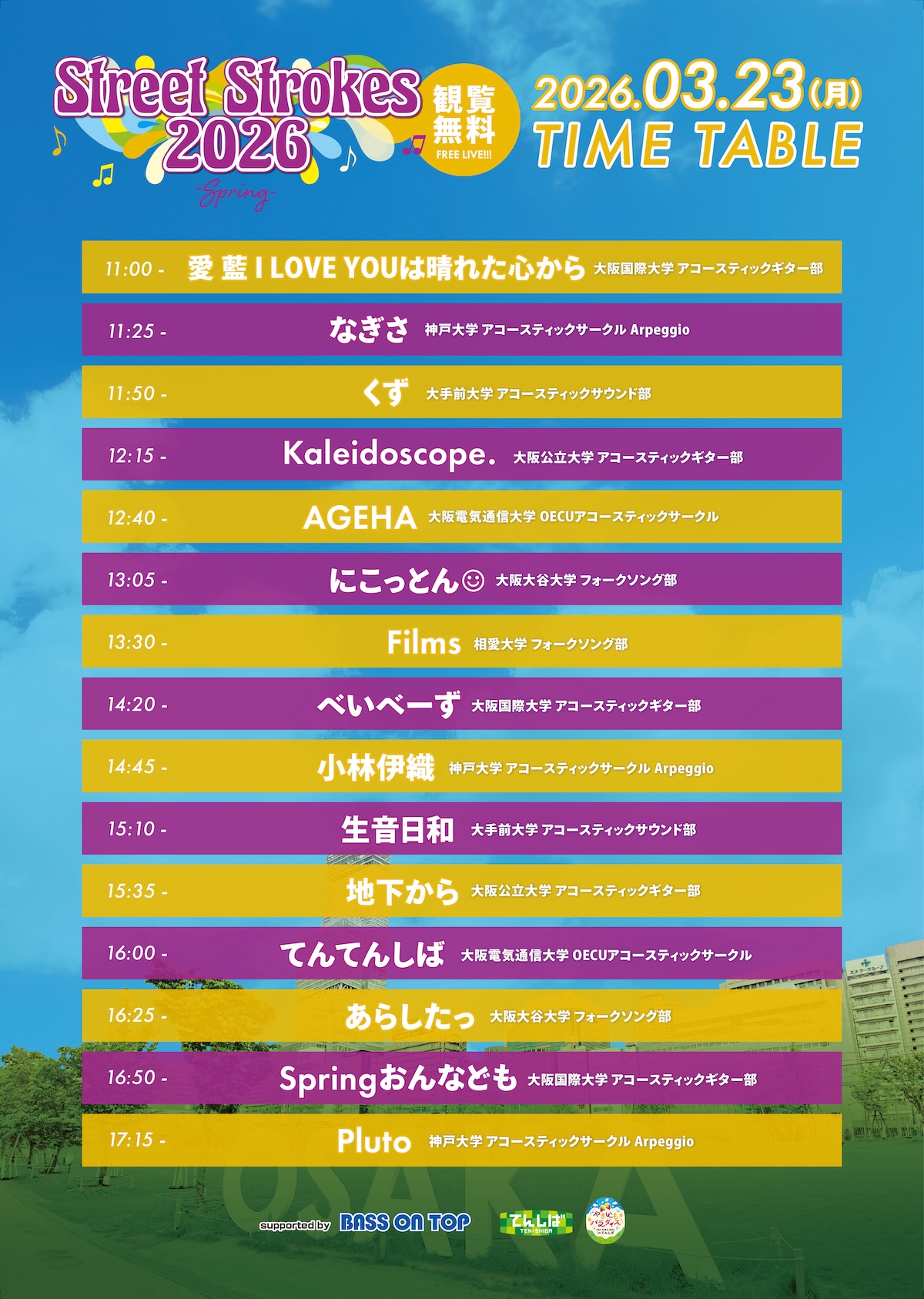 関西の7団体が集結する大学アコースティック系サークルルジョイントライブ【Street Strokes2026 -Spring-】