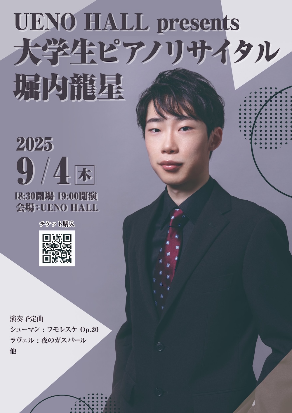UENO HALL presents 大学生ピアノリサイタル 堀内 龍星