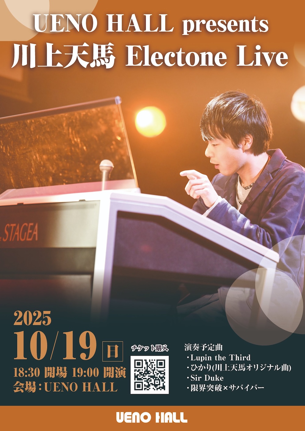 川上天馬独自のサウンドで聴く人を魅了する若手エレクトーンプレイヤー。